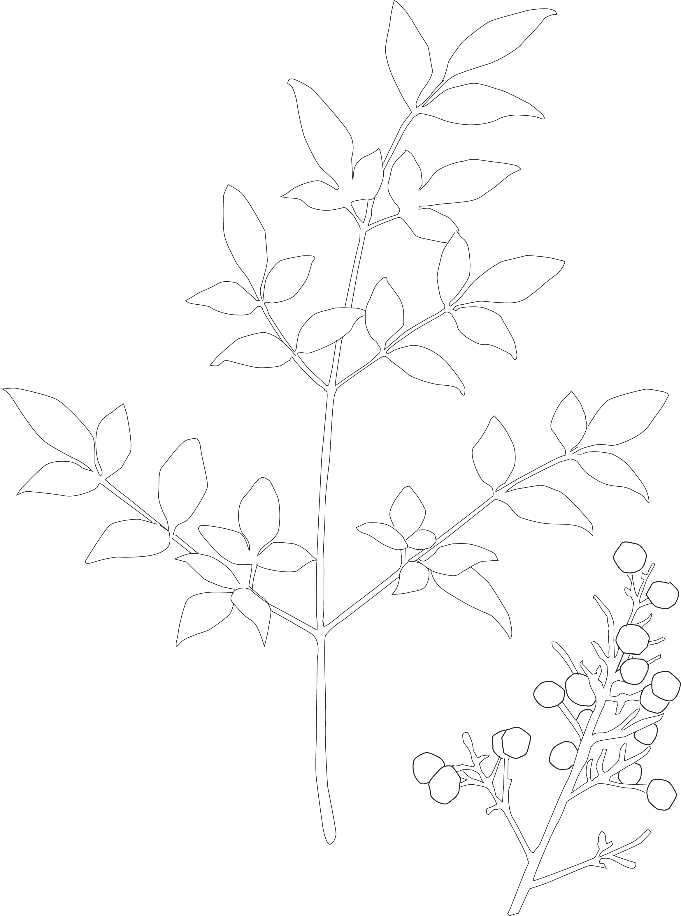 Semievergreen shiny compound leaves with 3-5 elliptic leaflets